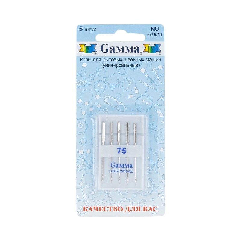 Иглы Gamma для бытовых швейных машин универсальные №75 NU-75 5шт