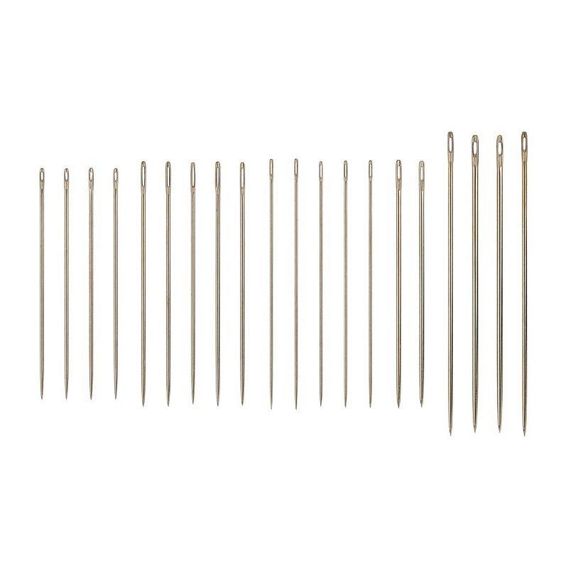 Набор игл для ручного шитья, наметки и вышивания. Иглы сделаны из высокоуглеродистой стали с идеальной гладкой поверхностью и никелированным покрытием, которое защищает иглу от коррозии и окисления. Ушки внутри игл отполированы и не имеют зацепок, поэтому нить не будет рваться при работе. Размер игл: 0.71x39 - 4шт;