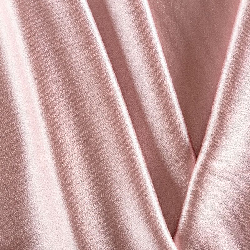 Итальянская ткань кади оттенка розового золота. Кади — это креп-атлас с красивым глянцевым блеском. Ткань с плотной фактурой, роскошно ниспадает, очень хорошо тянется, изумительно садится по фигуре и шикарно смотрится в изделии. Она хорошо драпируется, эффектно облегает. Подходит для пошива удлиненных платьев с драпировками, платья-футляра, брюк палаццо, юбки-карандаш, жакета, туники, кроп-топа, а также для вечерних, свадебных и  выпускных платьев и костюмов.