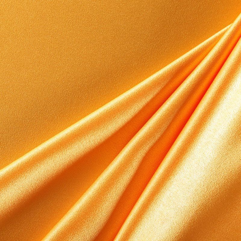 Итальянская ткань кади темно-желтого оттенка. Кади — это креп-атлас с красивым глянцевым блеском. Ткань с плотной фактурой, роскошно ниспадает, очень хорошо тянется, изумительно садится по фигуре и шикарно смотрится в изделии. Она хорошо драпируется, эффектно облегает. Подходит для пошива удлиненных платьев с драпировками, платья-футляра, брюк палаццо, юбки-карандаш, жакета, туники, кроп-топа, а также для вечерних, свадебных и выпускных платьев и костюмов.