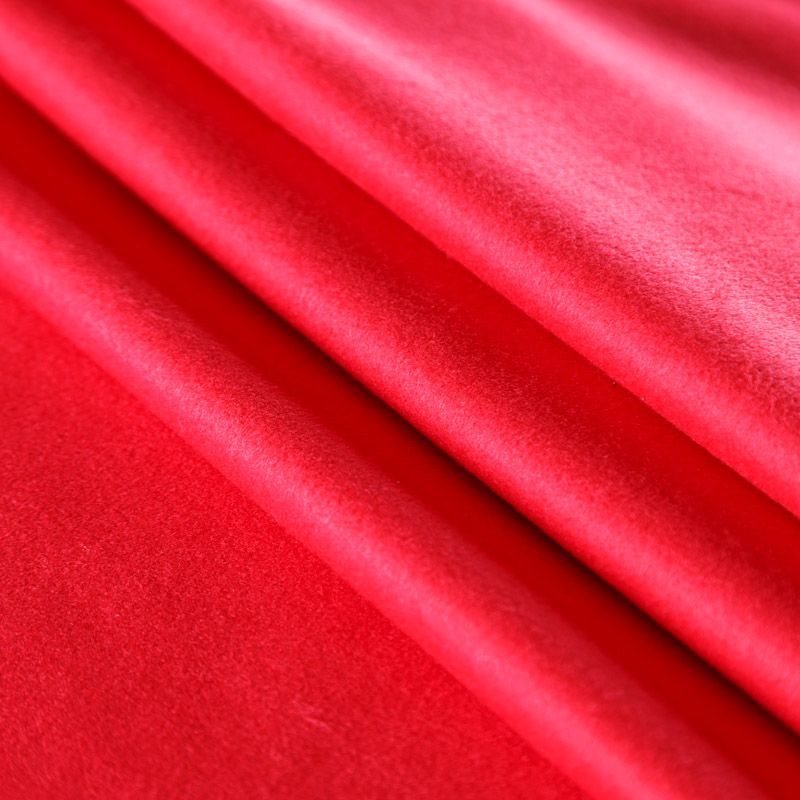 Итальянский пальтовый кашемир с добавлением шелка в ярком сочном оттенке. Ткань мягкая, пластичная, приятная на ощупь, гибкая, средней толщины, при этом высокой плотности. Поверхность имеет короткий ворс. Подойдет для пошива пальто, куртки, жакета, парки, кейпа, жакета или пончо.
