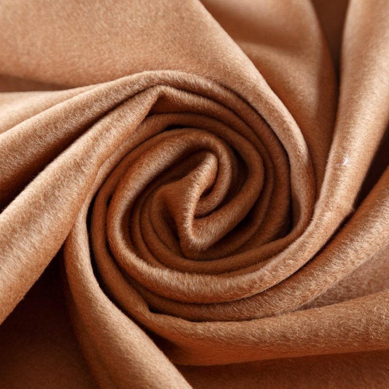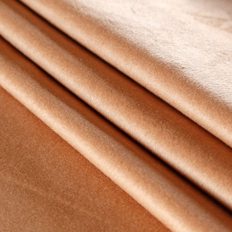 Итальянский пальтовый кашемир в классическом оттенке кэмел. Ткань мягкая, пластичная, приятная на ощупь, гибкая, средней толщины, при этом высокой плотности. Поверхность имеет короткий ворс. Подойдет для пошива пальто, куртки, жакета, парки, кейпа, жакета или пончо.
