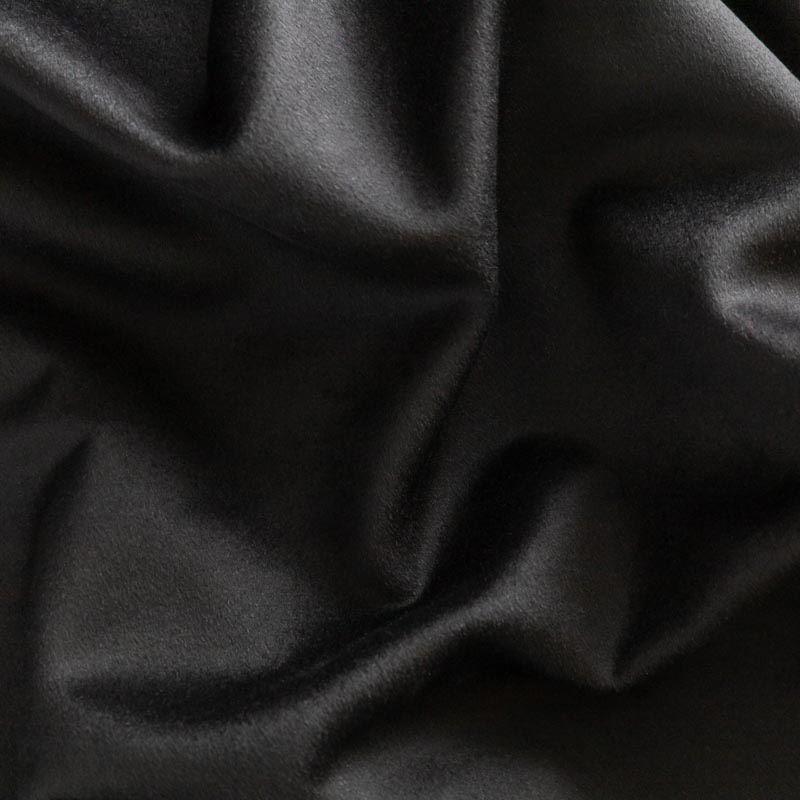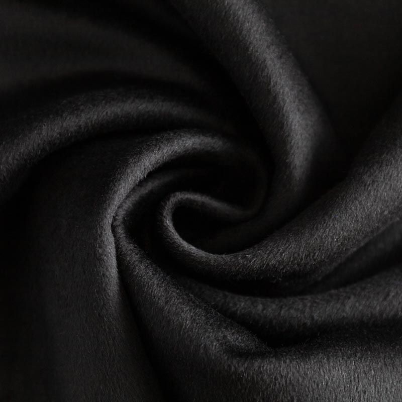Пальтовый кашемир в черном цвете. Ткань необычайно мягкая, приятная на ощупь, гибкая, средней толщины. Поверхность имеет короткий ворс и красивый, неповторимый, присущий кашемирам шелковистый отлив. Подойдет для пошива пальто, куртки, жакета, парки, кейпа, жакета или пончо.