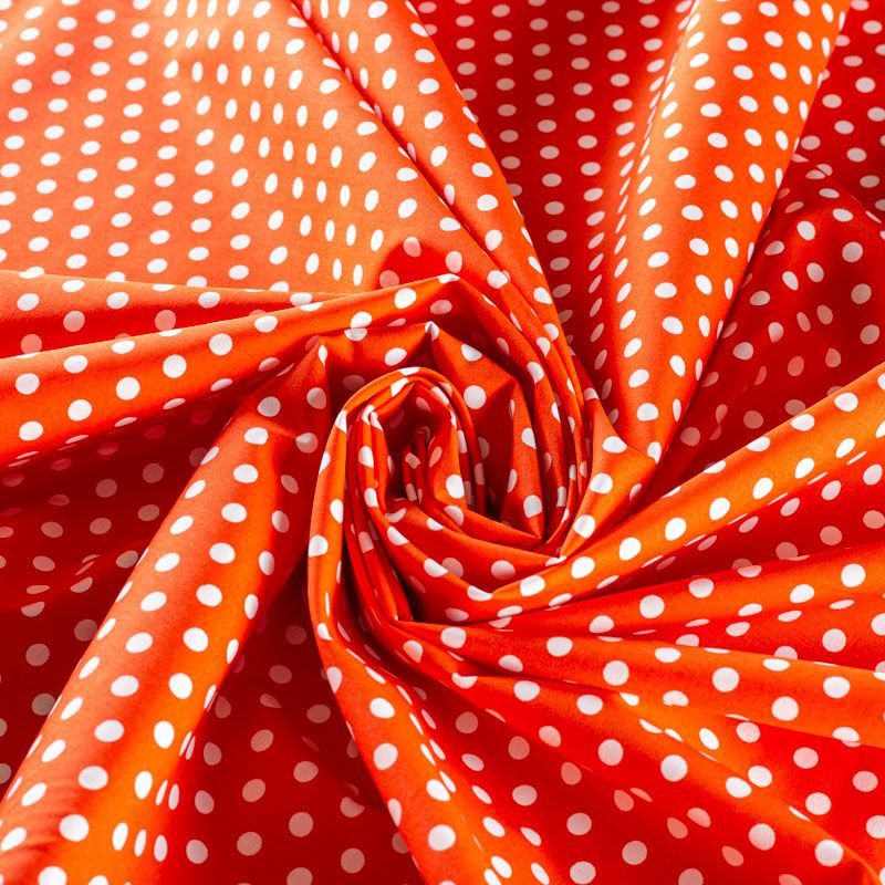 Плательно-блузочная ткань из натурального хлопка с принтом горох. Ткань легкая, тонкая, хорошо "дышит", мягкая, не прозрачная, немного тянется за счет эластана в составе. Подойдет для пошива летнего платья, летящей юбки, блузы, сарафана, комбинезона или рубашки.