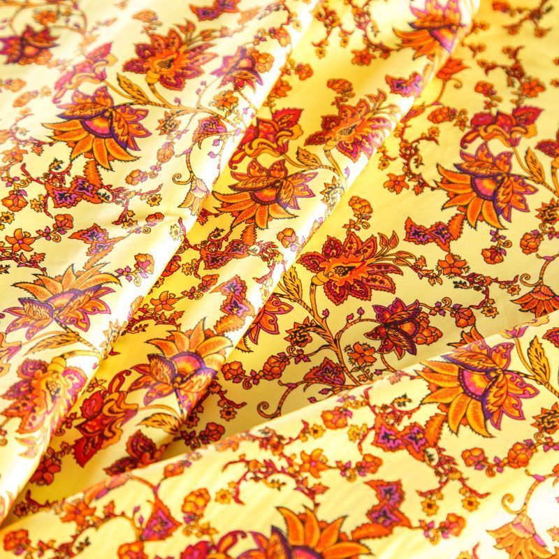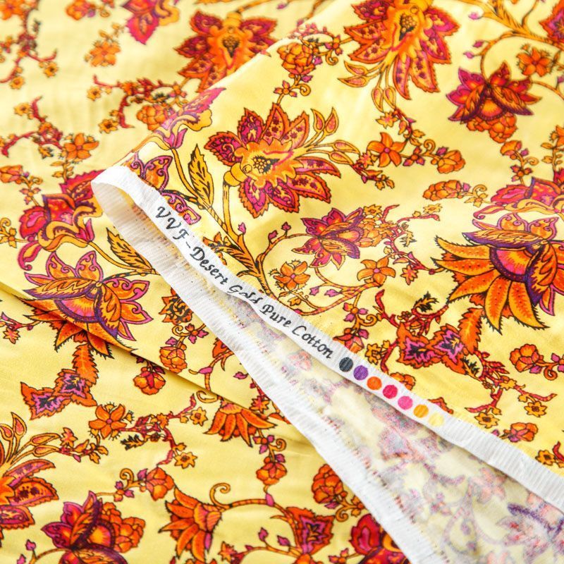 Плательно-рубашечная ткань из натурального хлопка с ярким цветочным принтом. Ткань легкая, тонкая, хорошо "дышит", слегка держит форму, не сухая, не прозрачная. Подойдет для пошива летнего платья, летящей юбки, блузы, сарафана, комбинезона или рубашки, а также для домашней одежды.