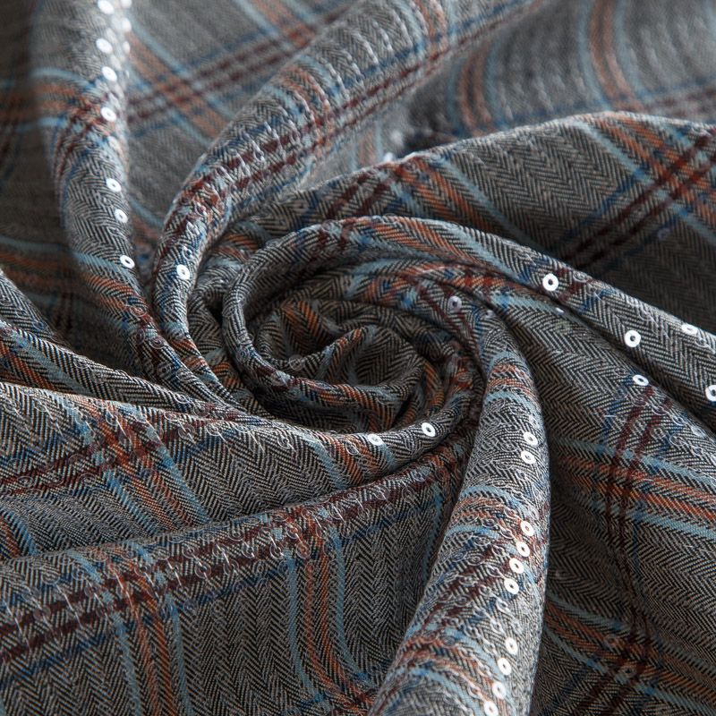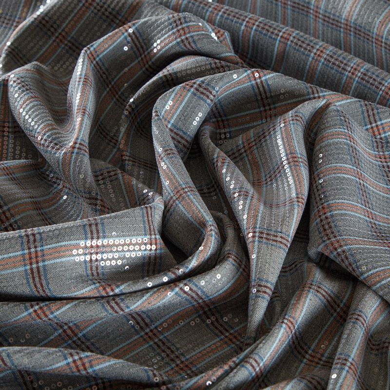 Хлопок с пайетками 063-16329 серый принтованный в Казани
