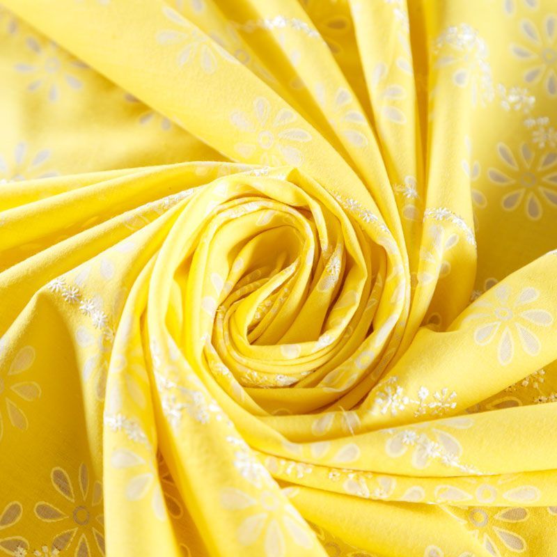 Хлопок с вышивкой 063-08452 лимонно-желтый однотонный в Казани