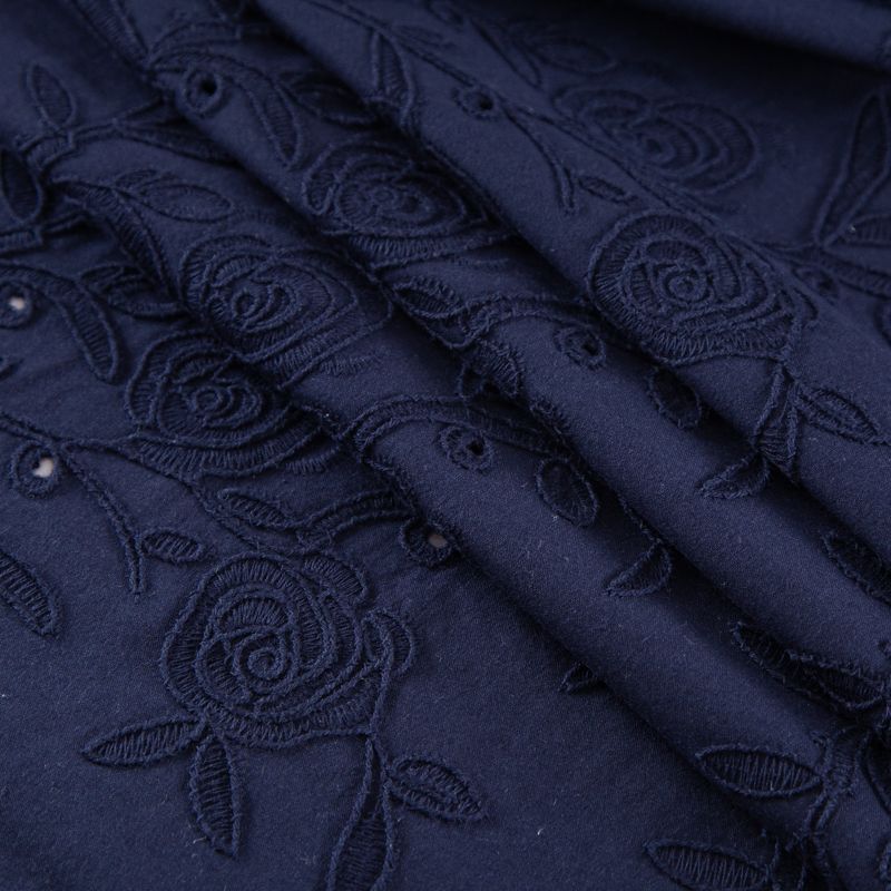 Хлопок с вышивкой 067-20043 темно-синий в Казани