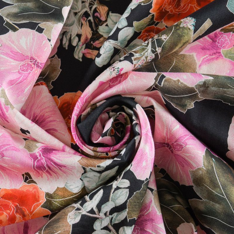 Хлопок стрейч 063-12101 черный принтованный в Казани