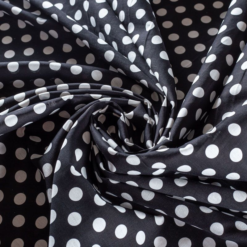 Костюмно-плательный коттон средней плотности в крупный горох, мягкий, приятный на ощупь, эластичный, немного держит форму, смотрится красиво. Поверхность ткани матовая, гладкая, полотняного переплетения. Подойдет для пошива костюма, легкого жакета, юбки, платья и других изделий на теплый и прохладный сезоны.
