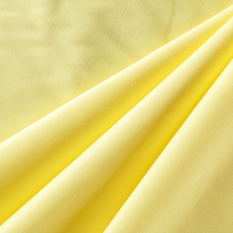 Коттон средней плотности желтого оттенка, мягкий, приятный на ощупь, эластичный, держит форму, смотрится красиво. Подойдет для пошива костюма, жакета, юбки, платья и других изделий на теплый и прохладный сезоны.