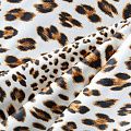 Итальянский коттон белого цвета с анималистическим принтом в природных оттенках. Поверхность гладкая, матовая, ткань средней плотности,  не толстая, хорошо держит форму, тянется за счет эластана в составе. Подойдет для пошива костюма, жакета, юбки, платья, брюк или шорт.