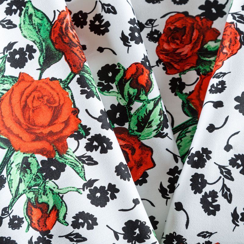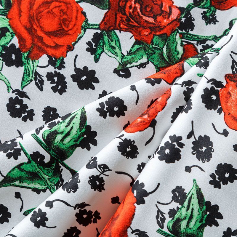 Ткань средней плотности, мягкая, приятная на ощупь, эластичная, держит форму, смотрится красиво, женственно. Подойдет для пошива костюма жакета, юбки, платья и других изделий, на теплый и прохладный сезоны.