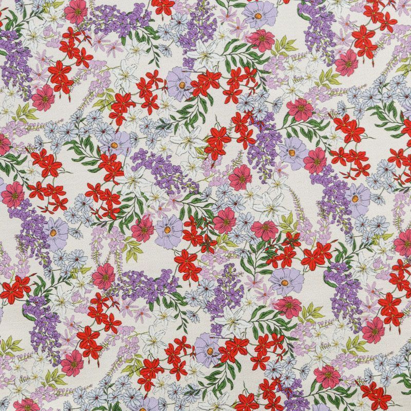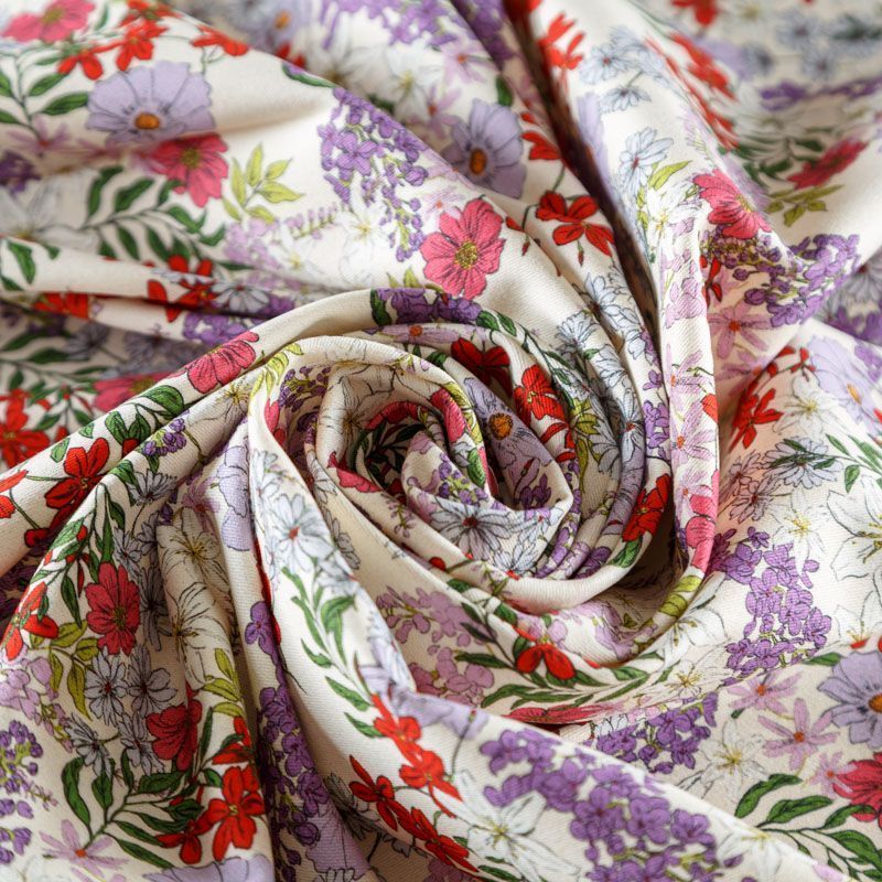 Итальянская хлопковая ткань плательной плотности в разбеленном желтом оттенке с цветочным принтом. Мягкая, приятная на ощупь, эластичная, держит форму, смотрится красиво, женственно. Подойдет для пошива костюма, легкого жакета, летней куртки, юбки, шорт, платья и других изделий.
