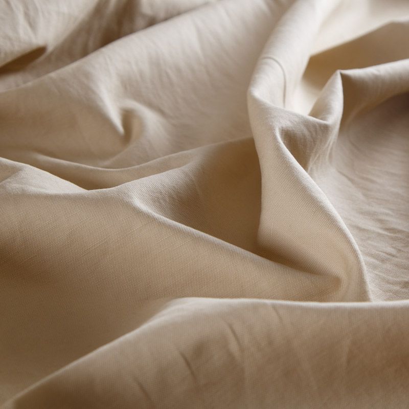 Итальянский плотный хлопок полотняного плетения в бежевом оттенке. Ткань имеет фактурную поверхность, хорошо держит форму, не тянется. Идеальна для пошива тренчей, ветровок, курток, парки, плаща.