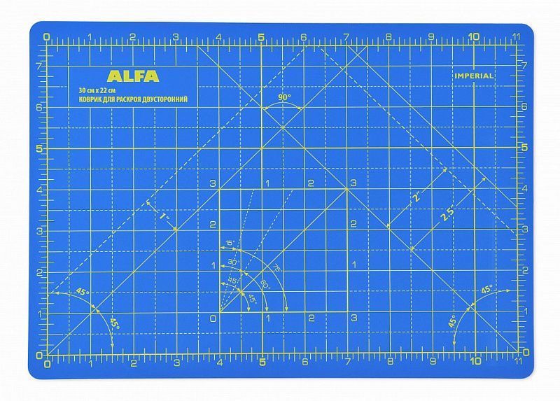 Коврик раскройный двусторонний ALFA 30*22см предназначен для нарезания ткани и подравнивания блоков при работе в технике пэчворк. Используется совместно с дисковым ножом и специализированными линейками. Поверхность коврика разработана таким образом, что на ней не остается следов от разрезов. Раскройный коврик ALFA имеет две рабочие поверхности и двустороннюю разметку: сантиметровую на одной стороне и дюймовую на другой. Дополнительно указаны углы на 45 и 60 градусов. Выполнен из первичного материала. Не содержит элементов вторичной обработки.