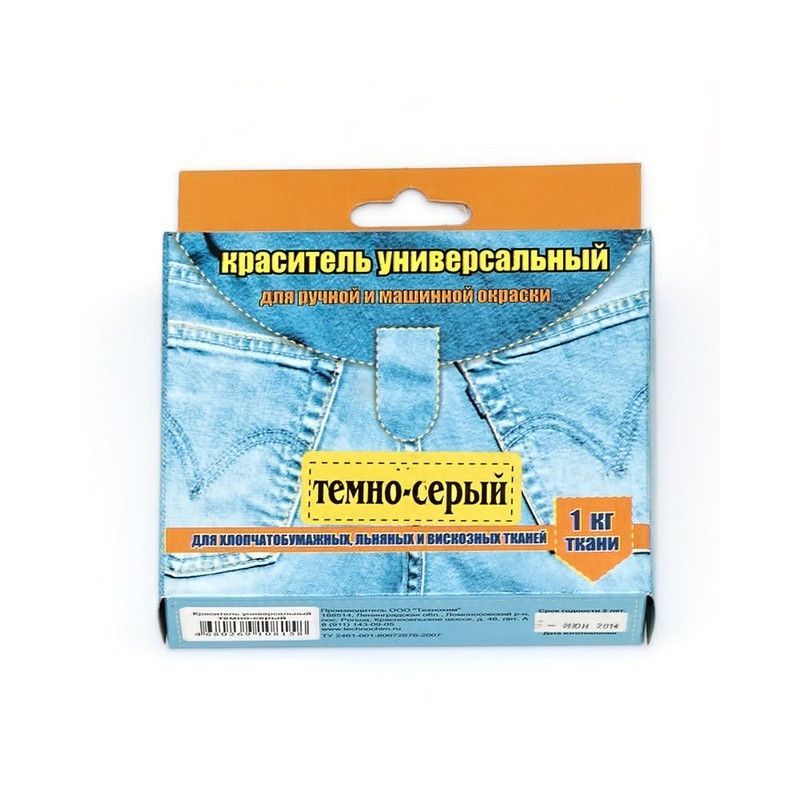 Универсальный анилиновый краситель для ткани «Джинн сам». Подходит для ручной и машинной окраски. Предназначен для окраски тканей из хлопка, льна, шерсти, шелка, смеси натуральных и синтетических волокон, где синтетики не более 20%. Рассчитан на 1 кг сухой ткани в зависимости от желаемой глубины тона и типа окрашиваемой ткани. Желаемый результат можно получить только при соблюдении инструкции на упаковке. Рекомендуемая концентрация красителя для темных цветов 2%, т.е. 20 гр. на 1 литр воды, для других цветов концентрацию можно снизить, в зависимости от желаемой интенсивности окрашивания. Срок годности 10 лет.