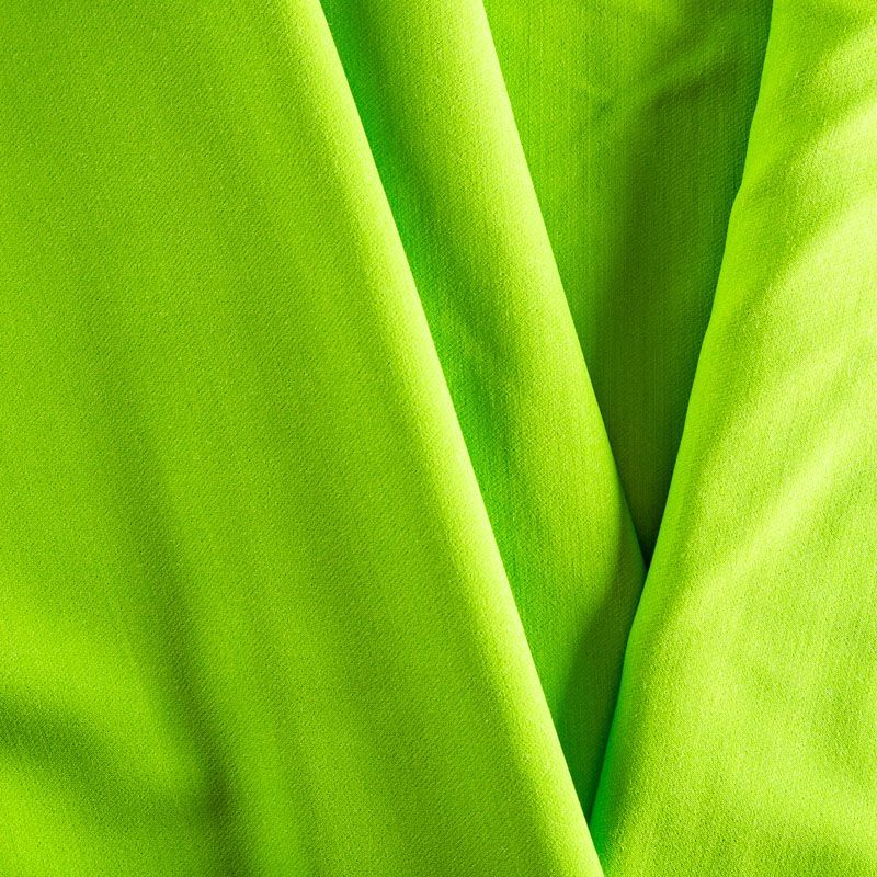 Итальянский шерстяной креп в сочном оттенке лайма. Ткань мягкая, пластичная, образует мягкие фалды, не просвечивает, тянется за счет эластана в составе. Подойдет для пошива весенне-осеннего костюма, платья, комбинезона, юбки, брюк.