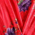 Плательно-блузочная вискозная ткань насыщенного красного оттенка с крупным цветочным принтом с креповым плетением. Ткань средней плотности, имеет зернистую фактуру и матовую поверхность, не просвечивает, пластичная, хорошо драпируется мягкими складками, струится. Подходит для пошива платья и сарафана, юбки, блузки, туники, топа, комбинезона.