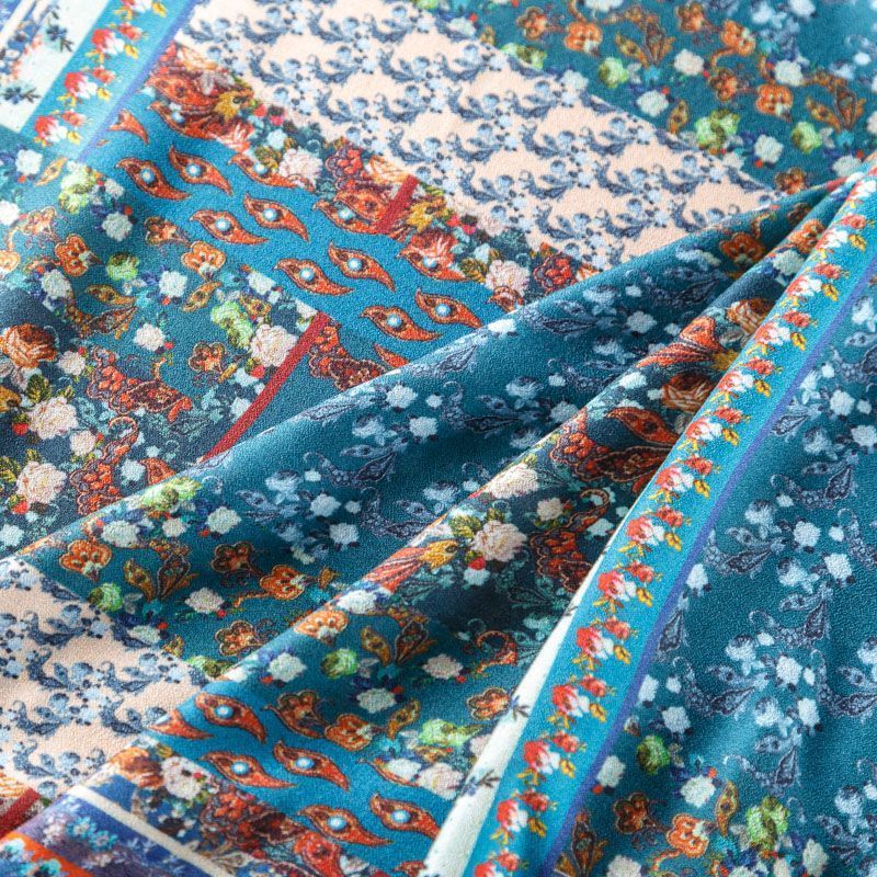 Итальянский плательный креп с отличным составом, и трендовым узором печворк. Материал приятный и комфортный в носке, не мнется и не прозрачен на свету, имеет мелкозернистую матовую поверхность. Идеально подойдет для пошива платья, юбки, широких брюк, комбинезона, блузки, топа или туники.