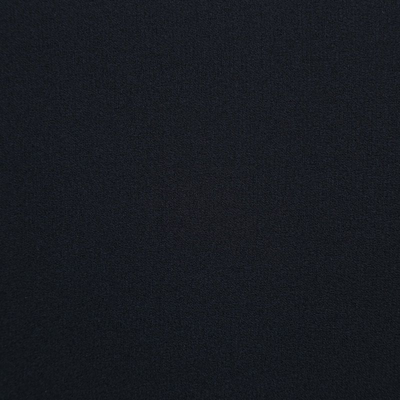 Итальянский шелковый креп черного цвета. Ткань костюмно-плательной плотности, очень пластичная, поверхность матовая, шероховатая, не просвечивает. Идеально подойдет для пошива платьев, юбок, костюма в пижамном стиле, комбинезона.