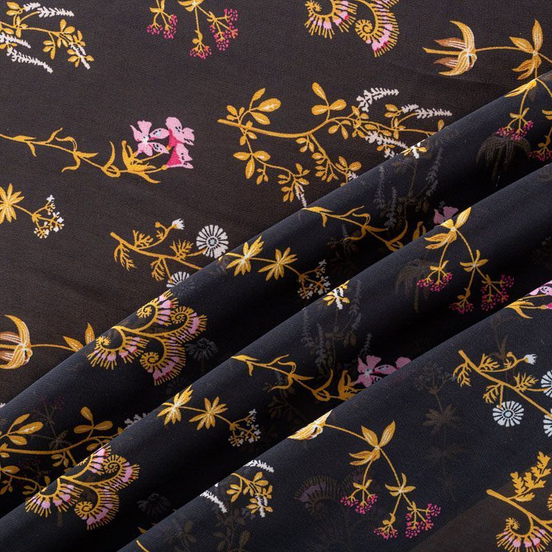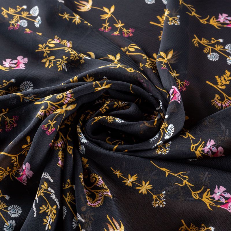 Креп-шифон 027-01280 черный принтованный