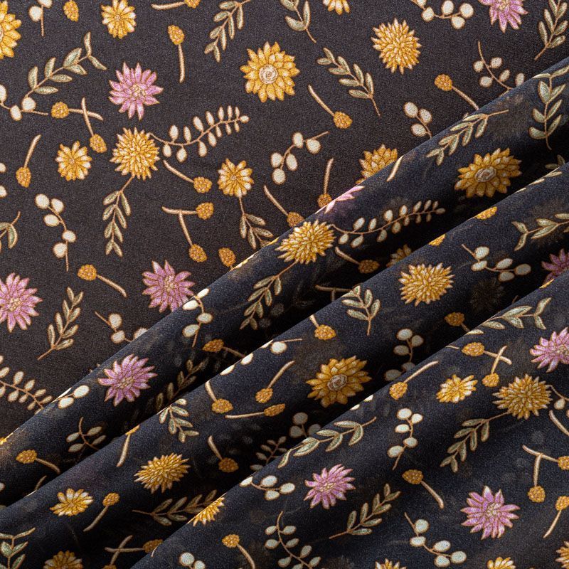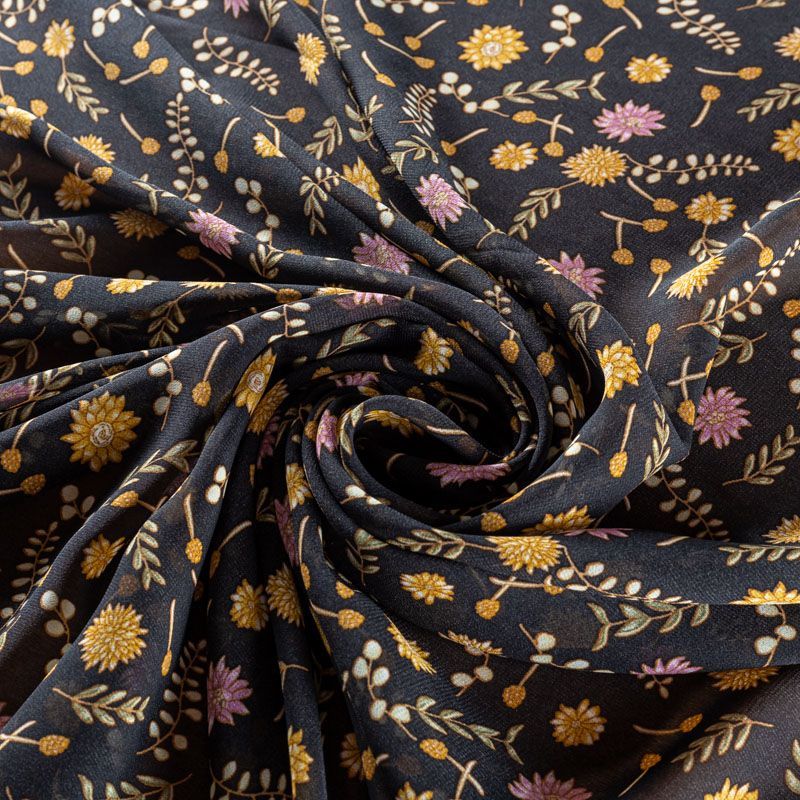 Легкий, воздушный, мягкий и нежный креп-шифон, прекрасно драпируется, приятен к телу, полупрозрачный, может потребоваться подклад. Поверхность матовая, без блеска, фактурная. Идеален для нежных платьев летящих силуэтов, топов, туник, блузок, юбок с роскошными драпировками и воланами.