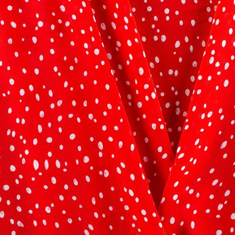 Легкий, воздушный, мягкий и нежный креп-шифон, прекрасно драпируется, приятен к телу, полупрозрачный, может потребоваться подклад. Поверхность матовая, без блеска, фактурная. Идеален для нежных платьев летящих силуэтов, топов, туник, блузок, юбок с роскошными драпировками и воланами.