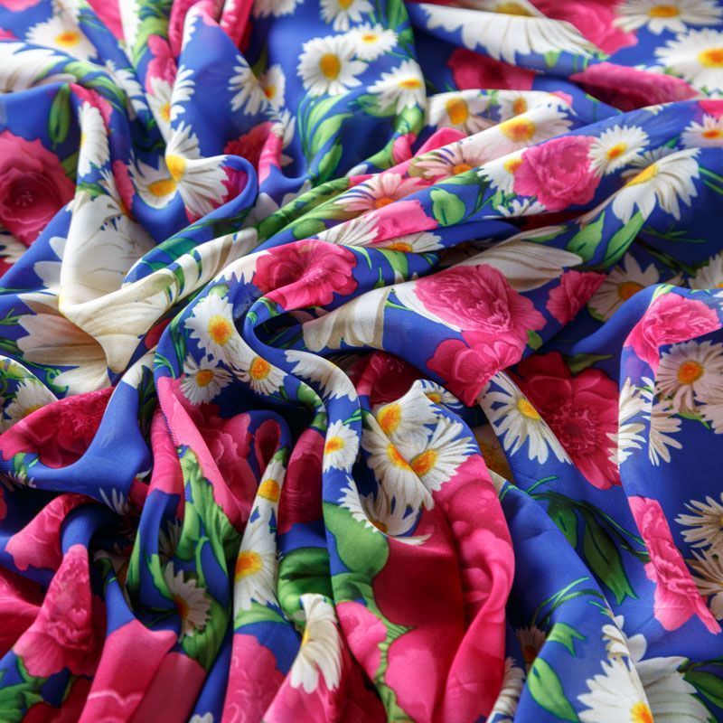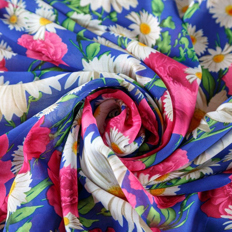 Креп-шифон 027-08233 синий принтованный в Казани