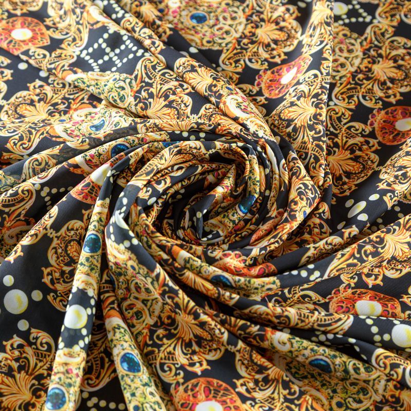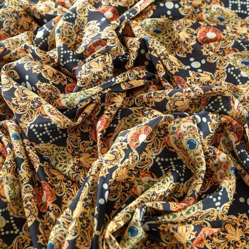 Креп-шифон легкий, воздушный, мягкий и нежный, прекрасно драпируется, тянется, приятен к телу, полупрозрачный, может потребоваться подклад. Поверхность шероховатая, матовая, без блеска. Тянется за счет эластана в составе. Идеален для нежных платьев летящих силуэтов, топов, туник, блузок, юбок с роскошными драпировками и воланами.