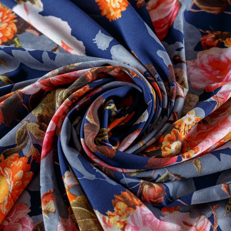 Креп-шифон 027-08385 синий принтованный в Казани