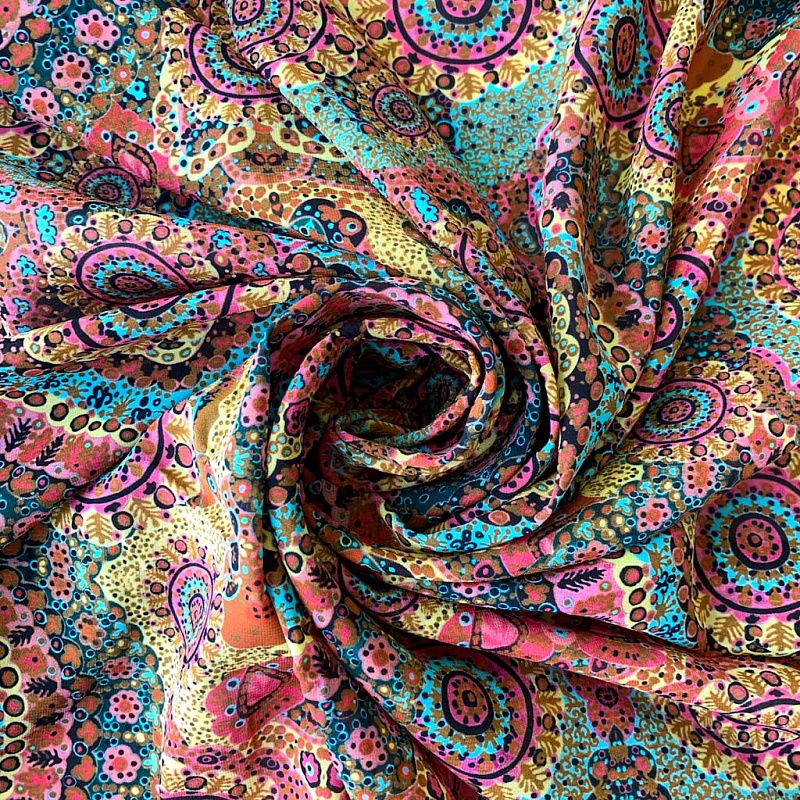 Креп-шифон натуральный К32-234 бордово-желтый принтованный в Казани