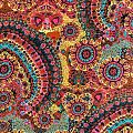 Креп-шифон натуральный К32-234 бордово-желтый принтованный