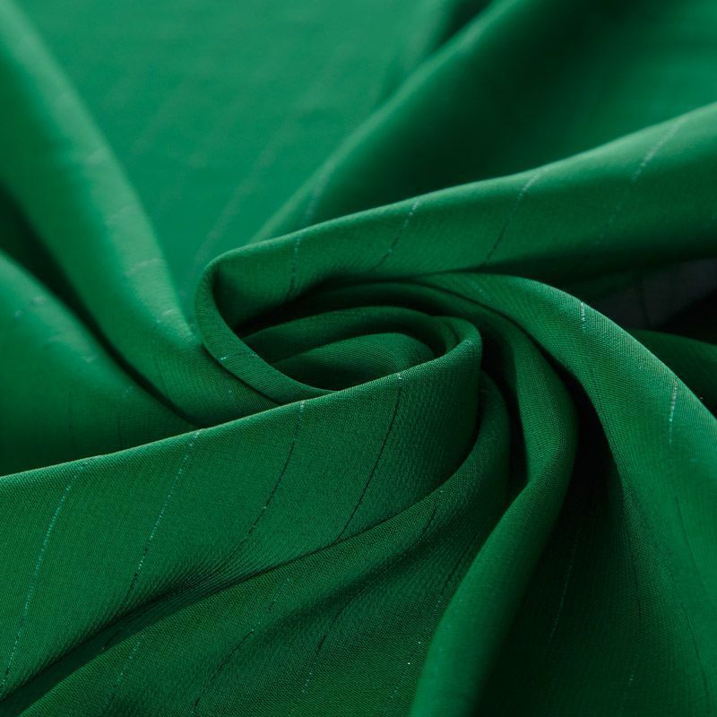 Итальянский смесовый креп-шифон Gucci в насыщенном зеленом оттенке с тонкими полосками люрекса. Полоски расположены горизонтально по ширине рулона.
