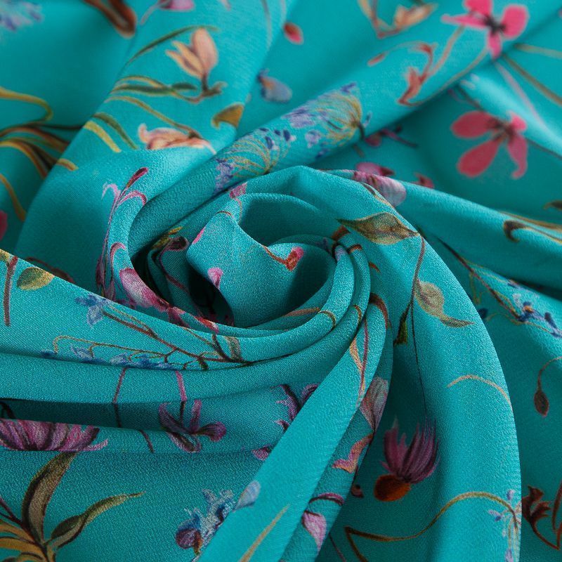 Креп-шифон шелковый 027-19150 бирюзовый принтованный в Казани
