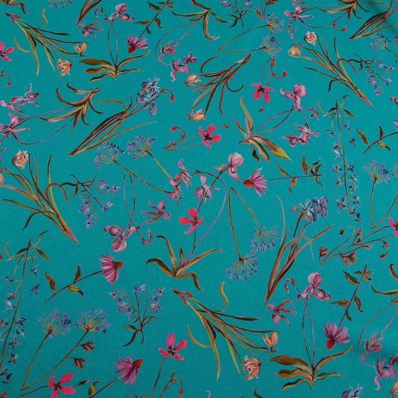 Креп-шифон шелковый 027-19150 бирюзовый принтованный