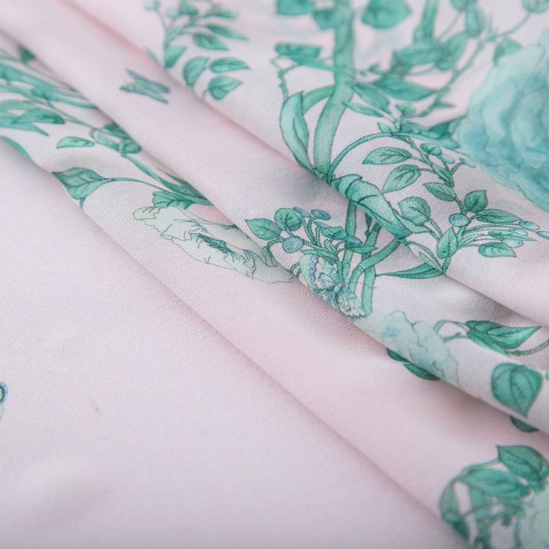 Креп-шифон шелковый 027-19927 розовое молоко принтованный