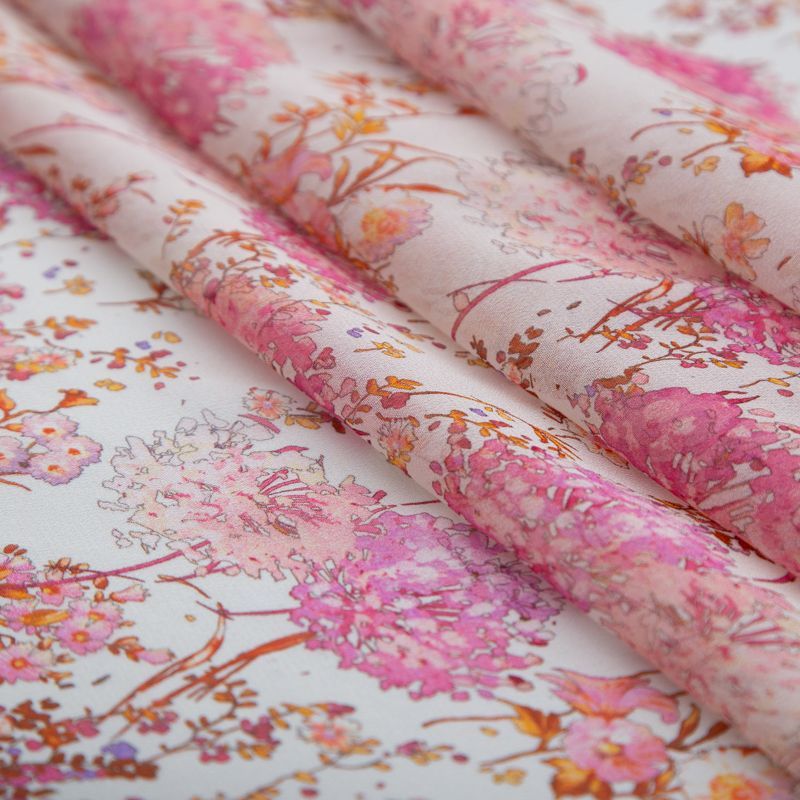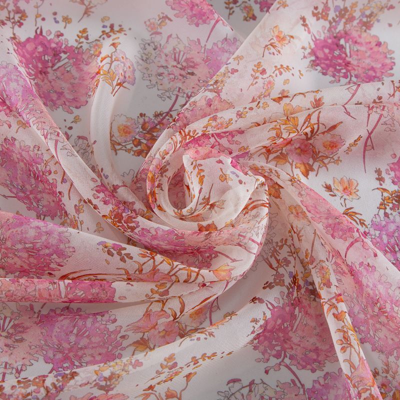 Креп-шифон шелковый 027-20216 молочный принтованный в Казани