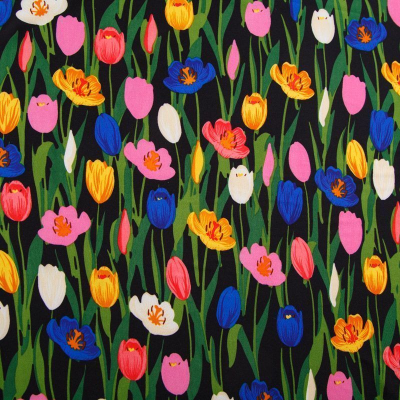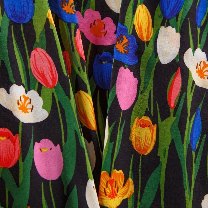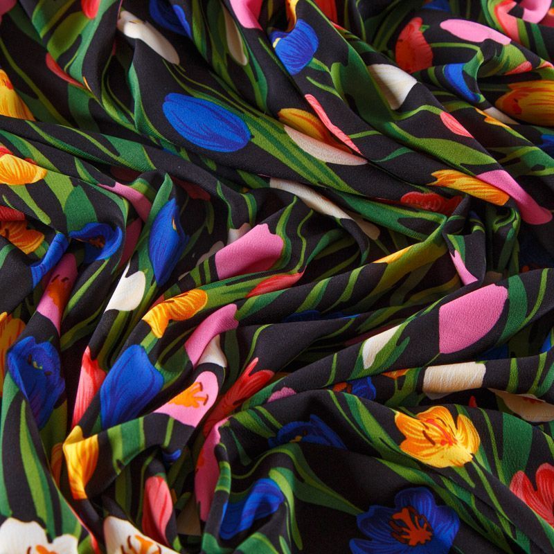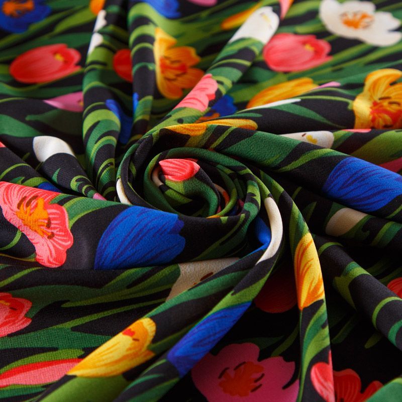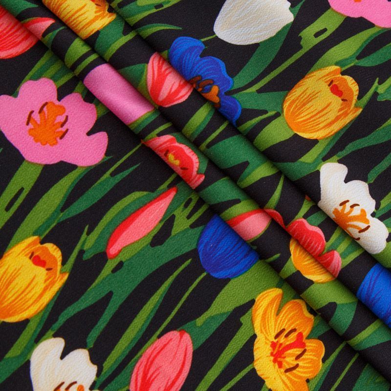 Креп-шифон стрейч 027-13093 черный принтованный в Казани