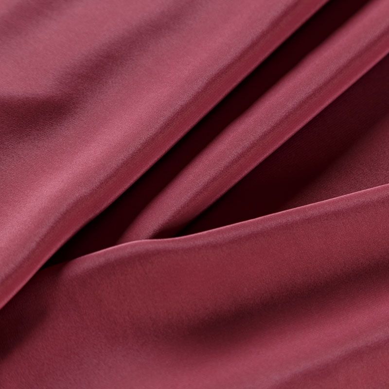 Шелковый крепдешин в бордовом оттенке, тонкий, легкий, фактурный, приятный на ощупь, тянется за счет эластана в составе. Ткань слегка просвечивает, можно использовать подклад. Прекрасно будет смотреться в платье, юбке, тунике, рубашке или блузке.