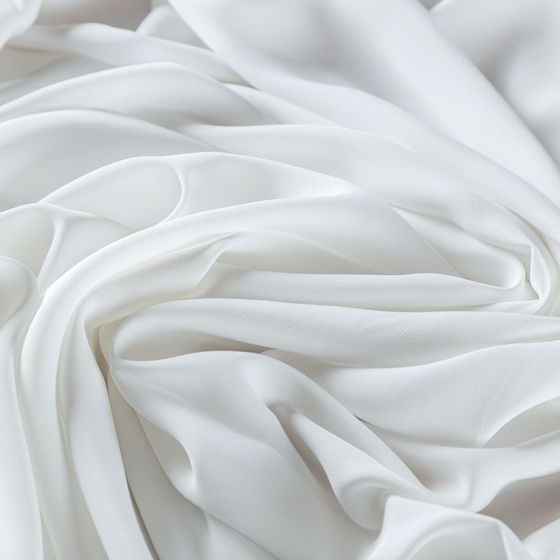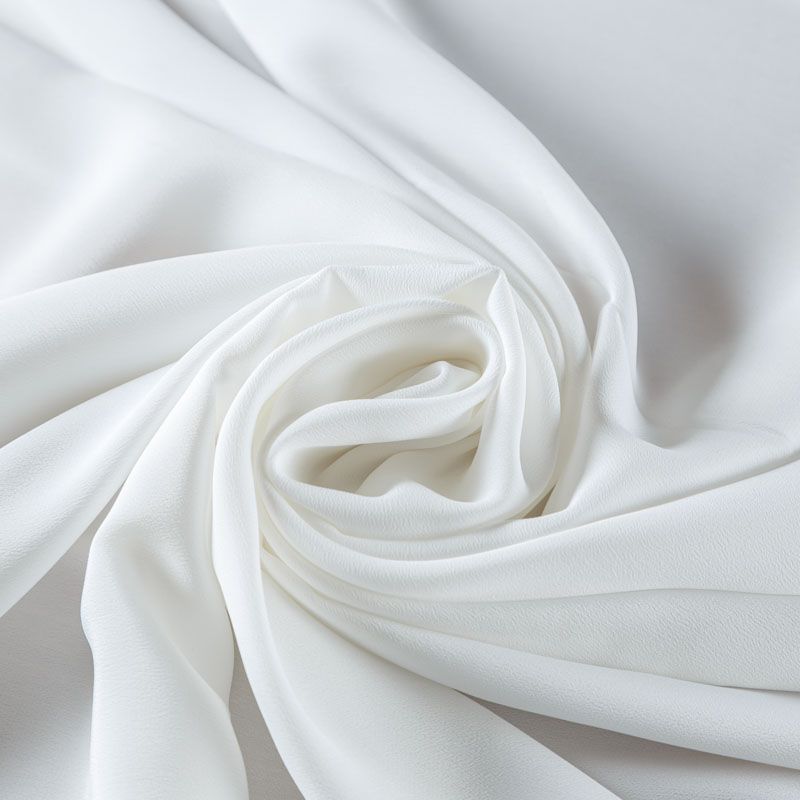 Шелковый крепдешин в белом оттенке, тонкий, легкий, фактурный, приятный на ощупь, тянется за счет эластана в составе. Ткань слегка просвечивает, можно использовать подклад. Прекрасно будет смотреться в платье, юбке, тунике, рубашке или блузке.