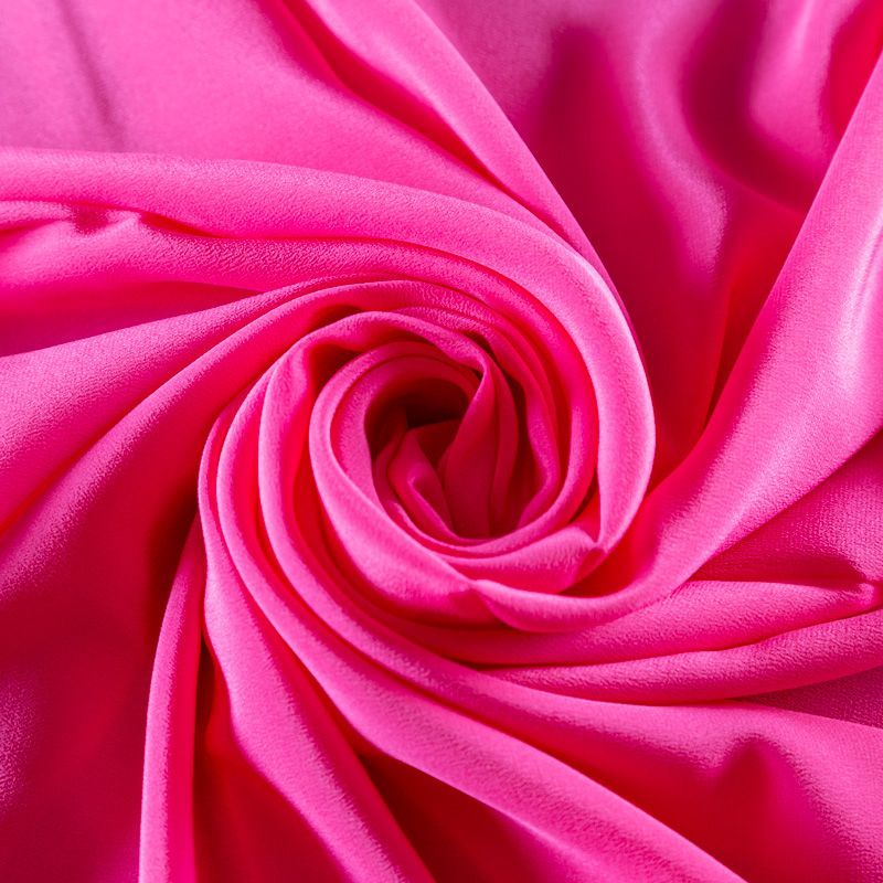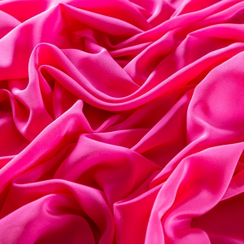 Итальянский натуральный шелковый крепдешин в ярком розовом оттенке, фактурный, легкий и струящийся, слегка просвечивает, отлично драпируется. Идеально подойдет для пошива платьев и сарафанов расклешенных моделей, с воланами, летящих юбок, топов, блузки, юбки, широких брюк, костюма в пижамном стиле.