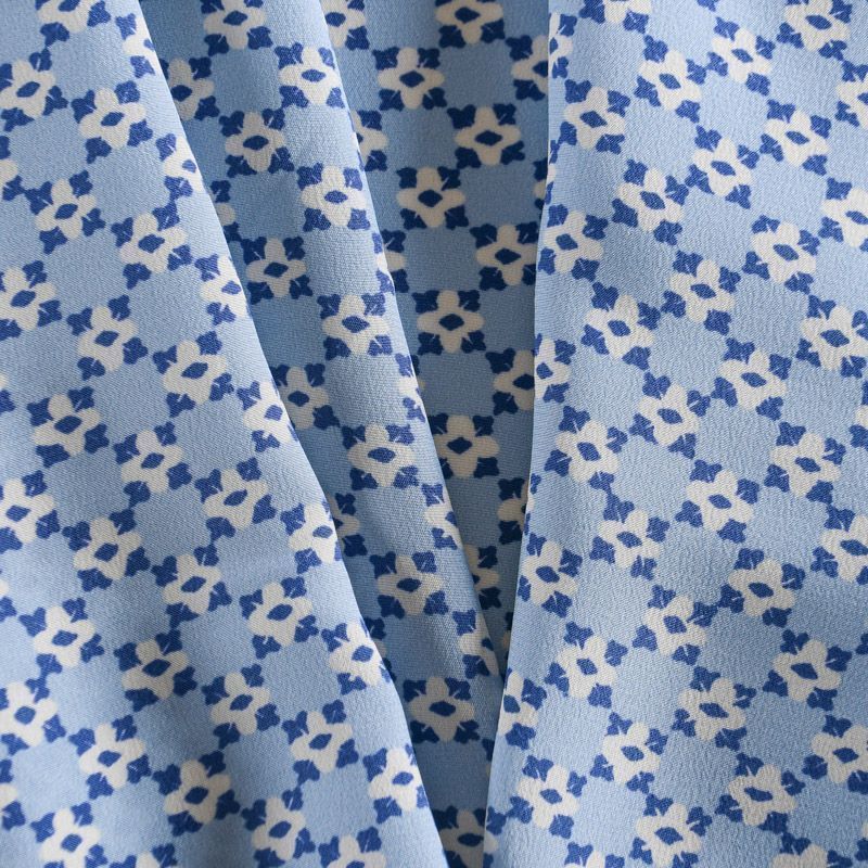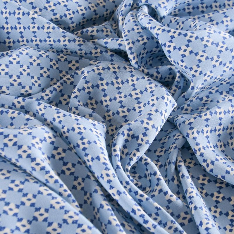Крепдешин натуральный 028-12192 светло-голубой принтованный в Казани