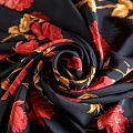 Итальянский натуральный крепдешин в черном оттенке с ярким цветочным принтом, тонкий, не прозрачный, отлично драпируется, легкий и струящийся. Идеально подойдет для пошива платьев и сарафанов расклешенных моделей, с воланами, летящих юбок, топов, блузки, юбки, широких брюк, костюма в пижамном стиле.