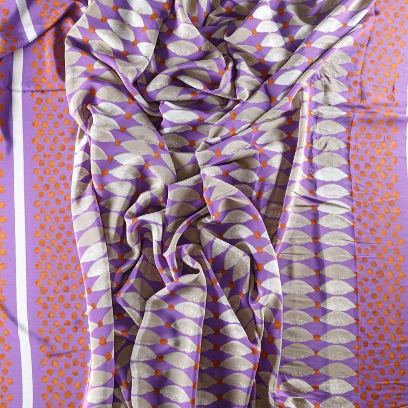 Крепдешин натуральный К01-377 лавандовый принтованный в Казани