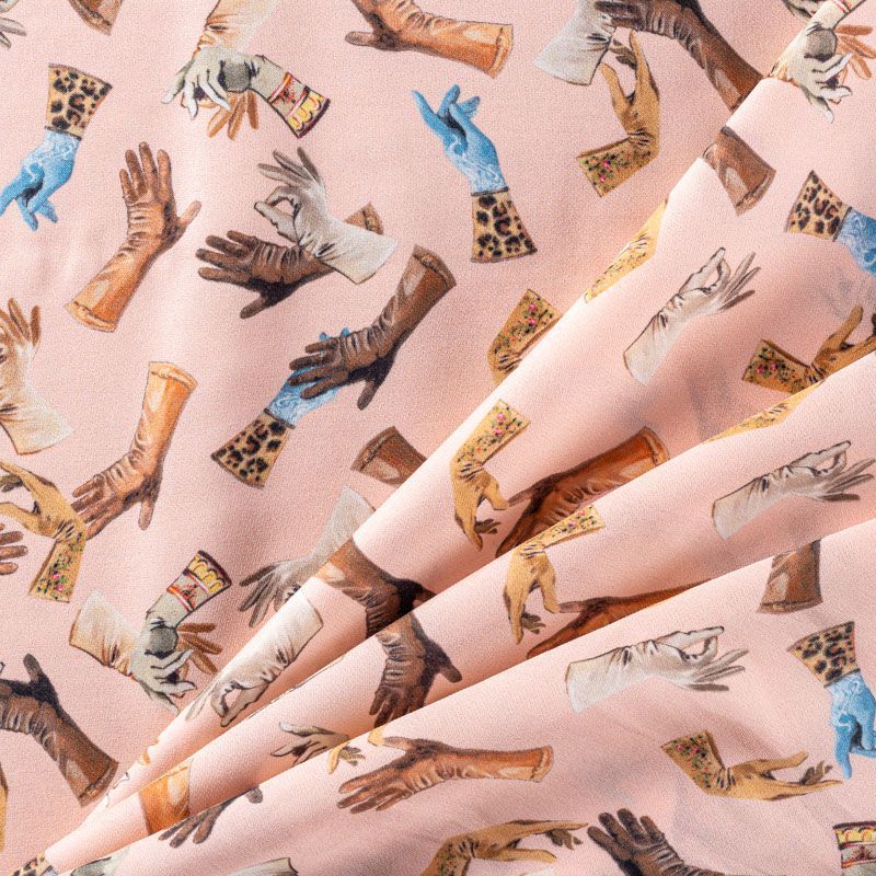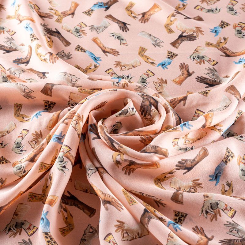 Крепдешин натуральный К08-358 пудровый принтованный в Казани