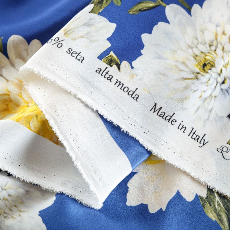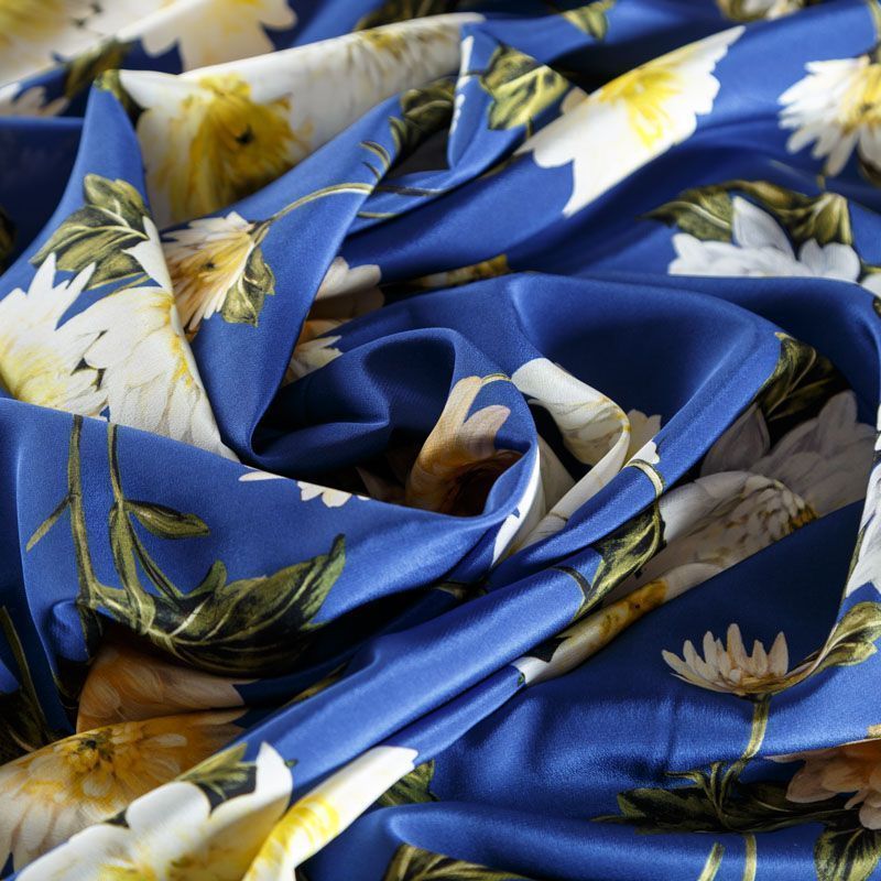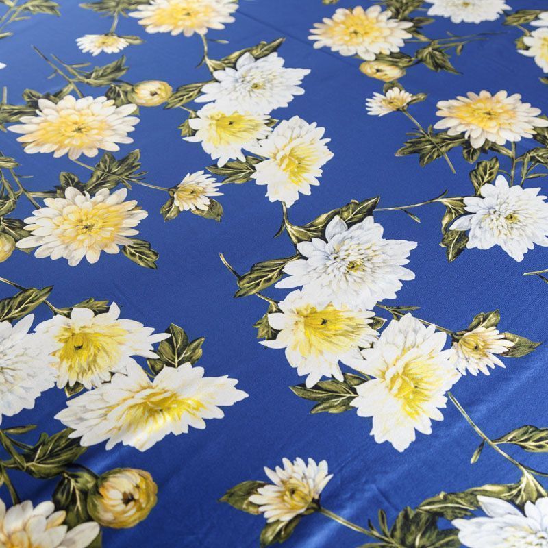 Крепдешин натуральный К15-003 синий принтованный в Казани