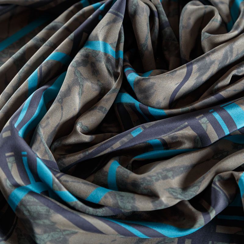 Крепдешин натуральный К18-475 бежево-серый принтованный в Казани