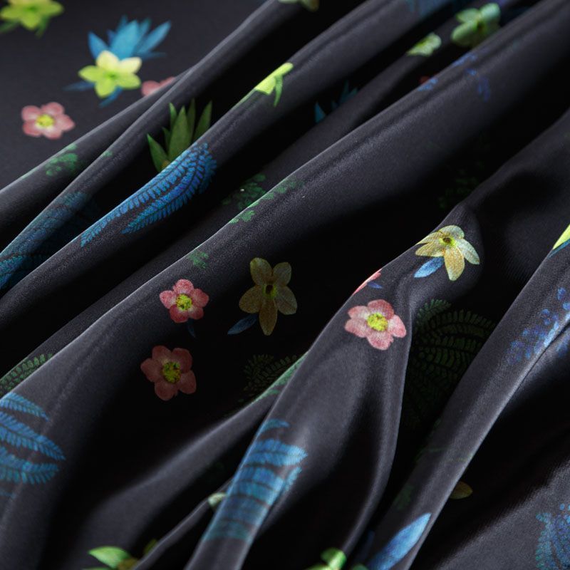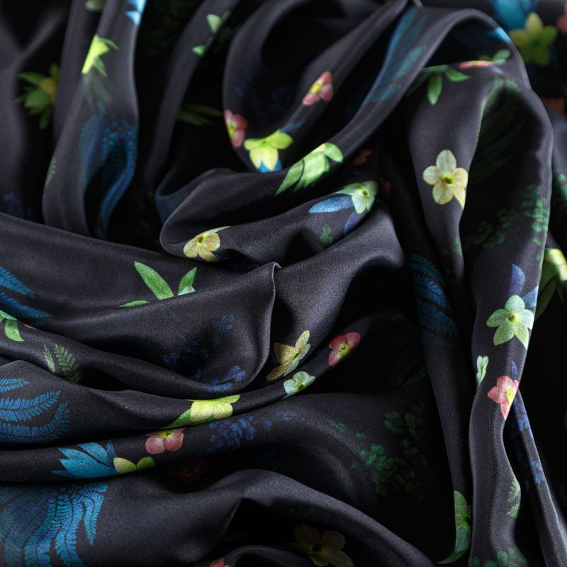 Крепдешин натуральный К24-032 черный принтованный в Казани