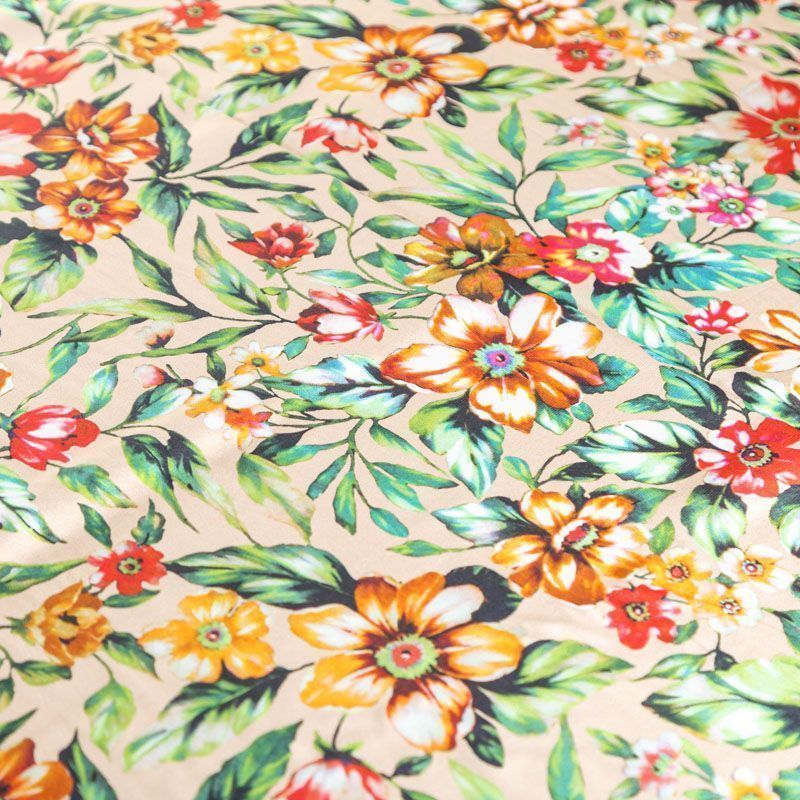 Крепдешин натуральный К27-037 бежевый принтованный